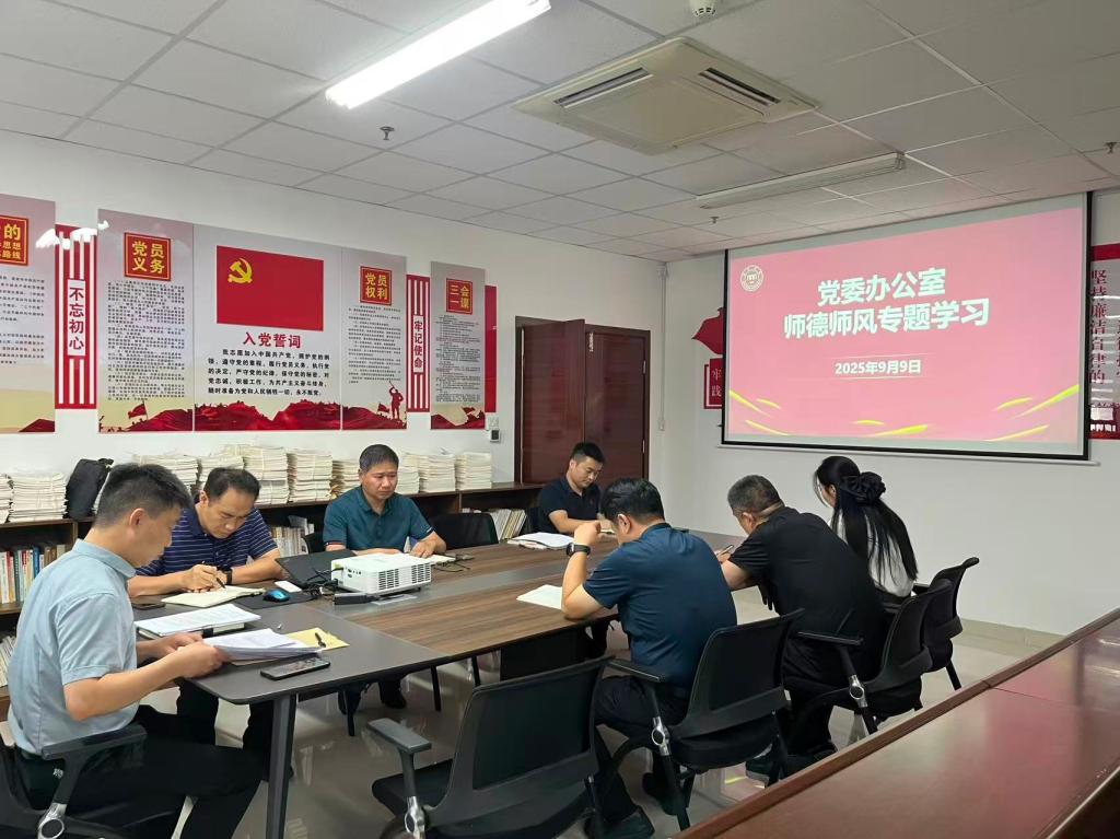 在第四十一个教师节来临之际,为大力弘扬践行教育家精神、进一步提振干事创业精气神,9月9日下午,党委办公室在行政楼南楼903会议室开展师德师风专题学习教育活动,党委办公室全体成员参加活动,活动由党委办公室主任孙德春主持。